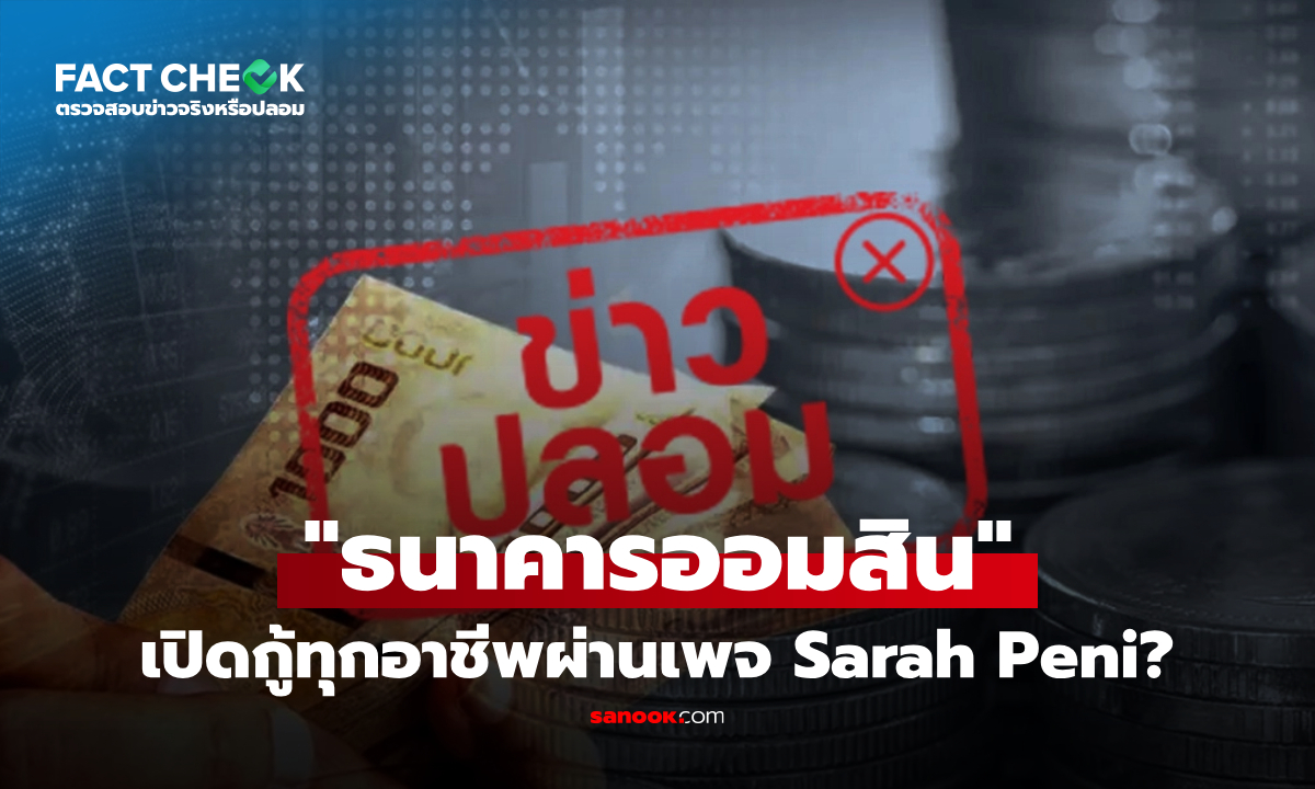 เช็กข่าวชัวร์ : "ธนาคารออมสิน" เปิดกู้ทุกอาชีพผ่านเพจ Sarah Peni จริงหรือไม่?